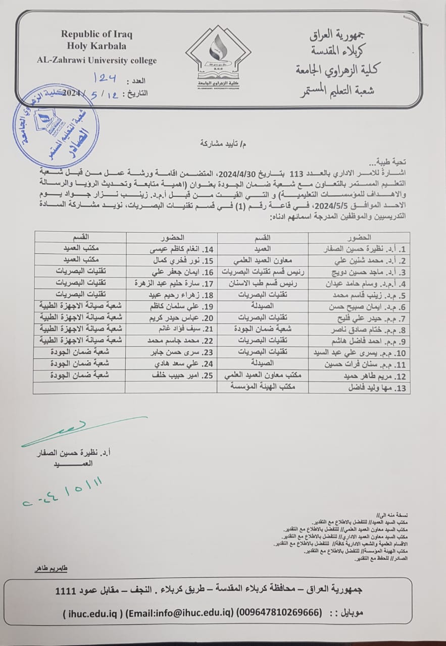 A training course organized by the Continuing Education Division in cooperation with the Department of Pharmacy, entitled (Polluted Air – The Invisible Killer).