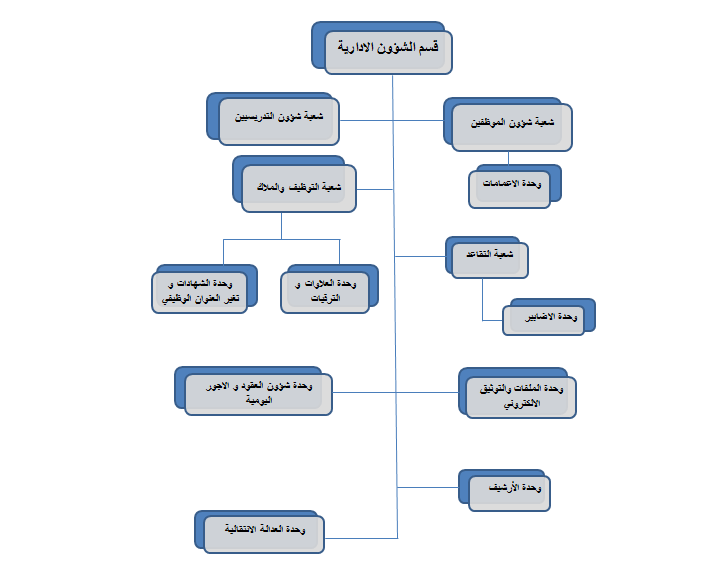 يُعدّ قسمُ الشؤون الإدارية في جامعة الزهراوي ركيزةً أساسية في عمل الجامعة، إذ يشكّل مركزًا لاتخاذ القرارات ويوفّر خدماتٍ إداريةً فعّالة. ويضم القسم فرقًا متخصّصة تُعنى بإدارة شؤون العاملين من كوادر أكاديمية وفنية وإدارية، إضافةً إلى متابعة المهام الموكلة إليه داخل الجامعة وخارجها. كما يرتبط القسم بجميع الأقسام العلمية والاستشارية، ويعمل تحت إشراف مكتب مساعد رئيس الجامعة للشؤون الإدارية والمالية.